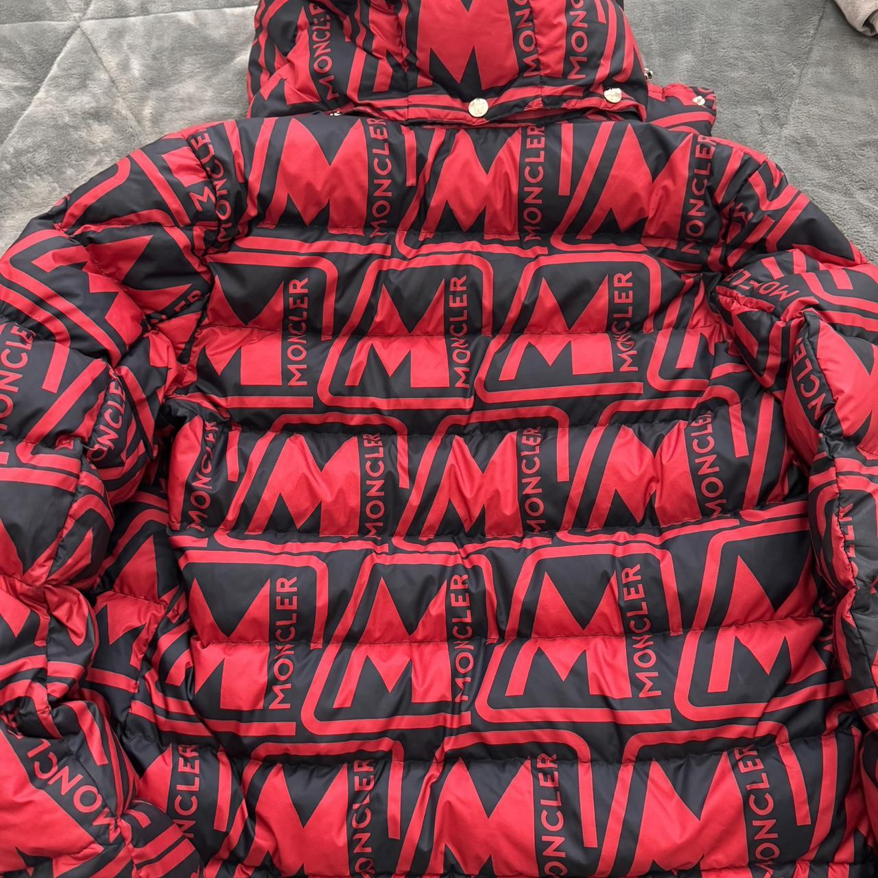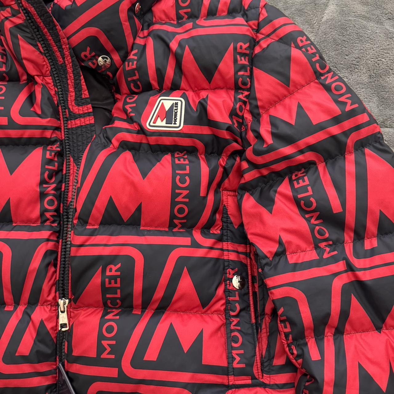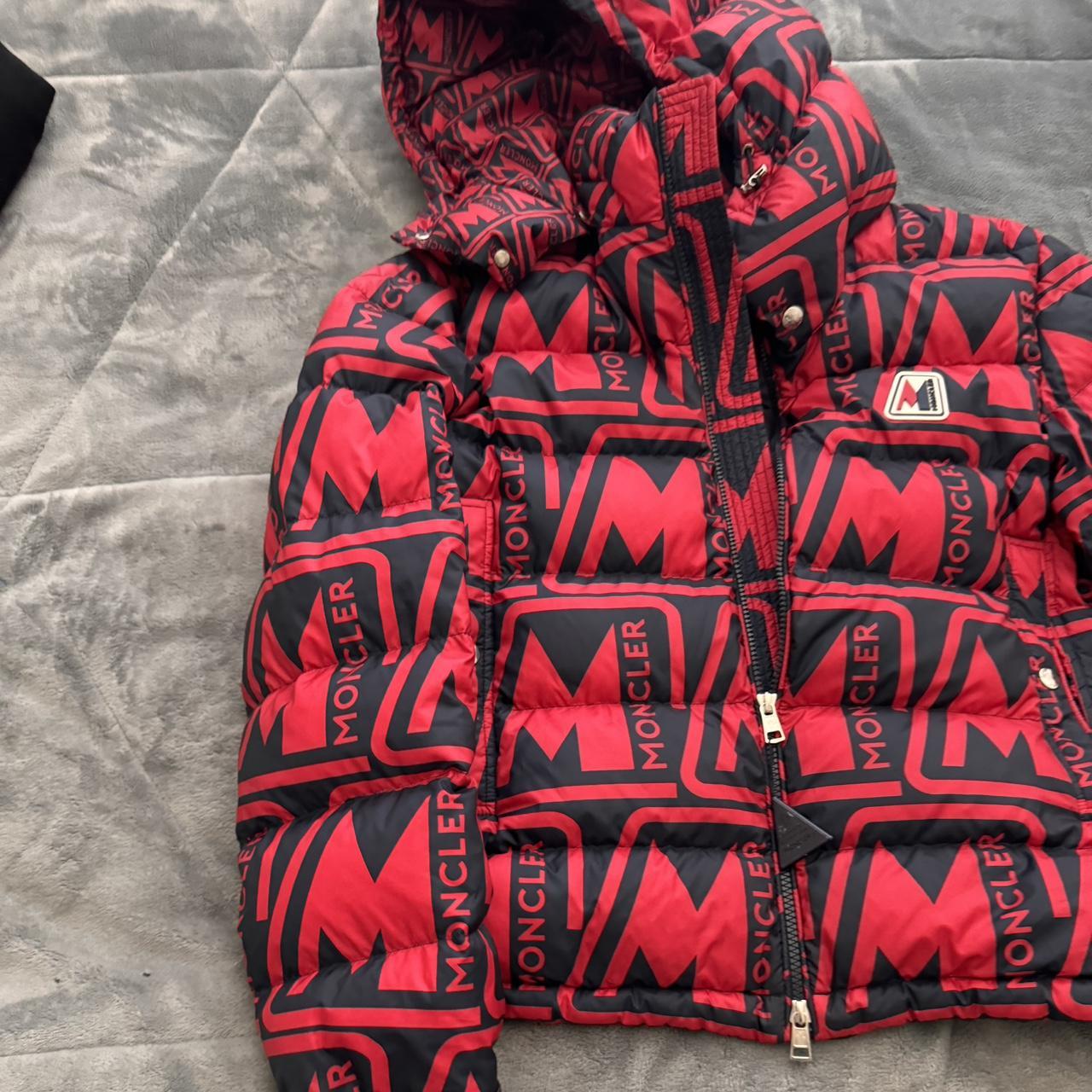 Red and black Moncler puffer coat fits men