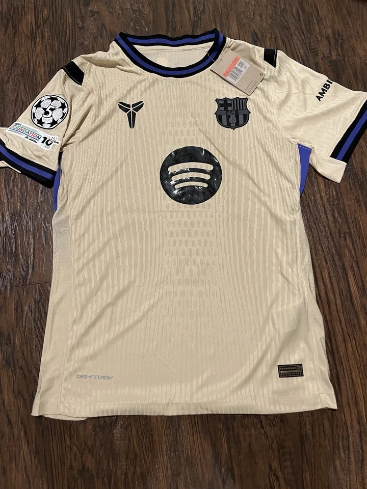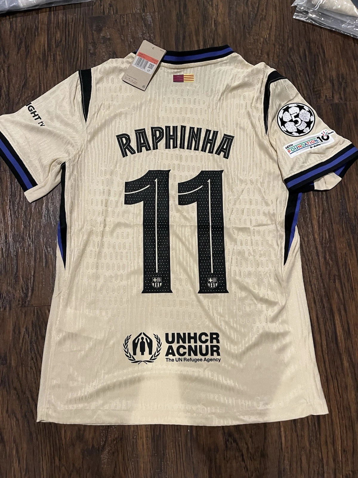 FC Barcelona x Spotify Raphinha jersey #FCBarcelona #Raphinha navy and gold, football jersey, team crest, graphic print, sportswear, matchday, athleisure, soccer kit, team logo, athletic style