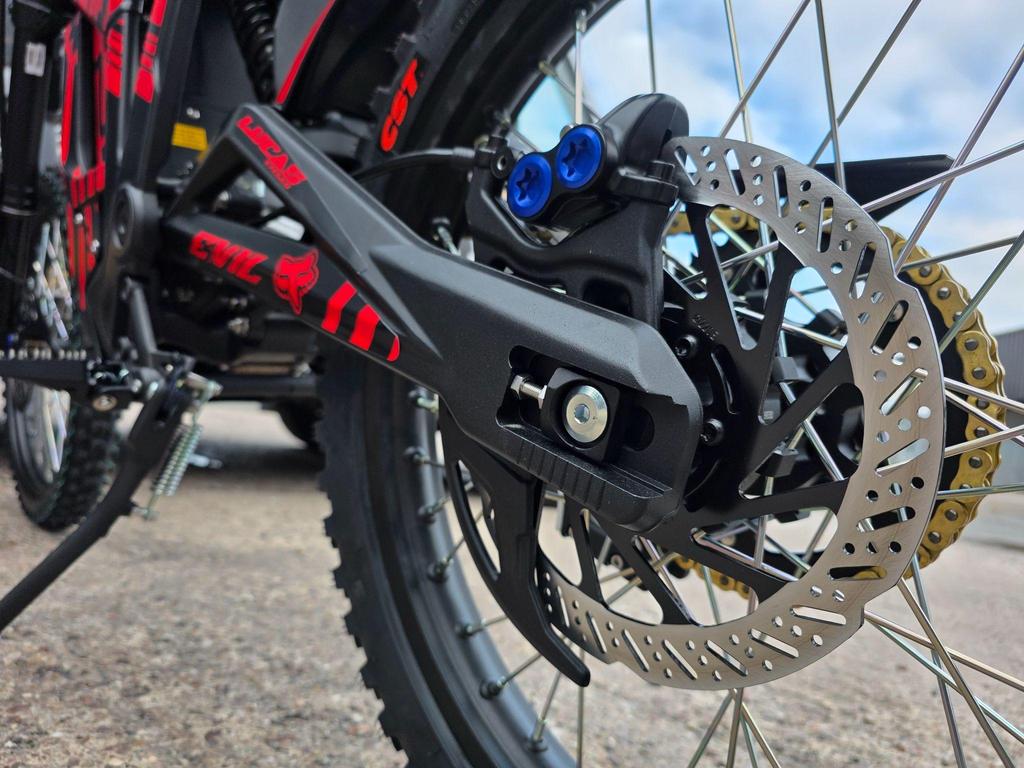 Talaria Sting 72v Pro Brand new Evil Ink graphics £200 Extra Buy from the Talaria UK Official Dealership Every new vehicle we supply comes with the following: Fully PDI Checked 5 Year Warranty Included Free Delivery OR Finance options On site workshop / tech bay 7 days a week support and after sales Fully Valeted before sale. ONECARTSHOP LTD is a family run business with over 5 years in the motorcycle industry. Buy with confidence knowing we make sure every vehicle leaves us in ready to go condition. Full payment options available via Card payments, Bank Transfer, Finance Accepted Lucascycles.co.uk for more information on our products and services. Orders can now be taken on our new website. Product specifications: THE ULTIMATE STING, 72V PERFORMANCE The all-new 72V Sting delivers the ultimate riding experience with a 33% more powerful air-cooled motor, peaking at 13kW. Notably faster acceleration and top speed makes the Sting Pro the ultimate riding machine. HIGH POWER BATTERY With more demands comes larger batteries. Not only does this increase acceleration and top speed the new battery brings an increased range. Let’s not forget the reduced 25% charging time, charging from 0-100% in just 3 hours. BUILT FOR THE EXTREME Rigid frame & swingarm coupled with a new upgraded suspension offering a wider range of preload and rebound adjustment making it arguably now the best in class. An updated gearbox to ensure a smooth delivery of power from the motor to the dirt. THE CONCLUSION The Sting Pro is not only the most accomplished electric motorcycle in its class, but it also represents great value, as pound-for-pound nothing can match it for power and performance.